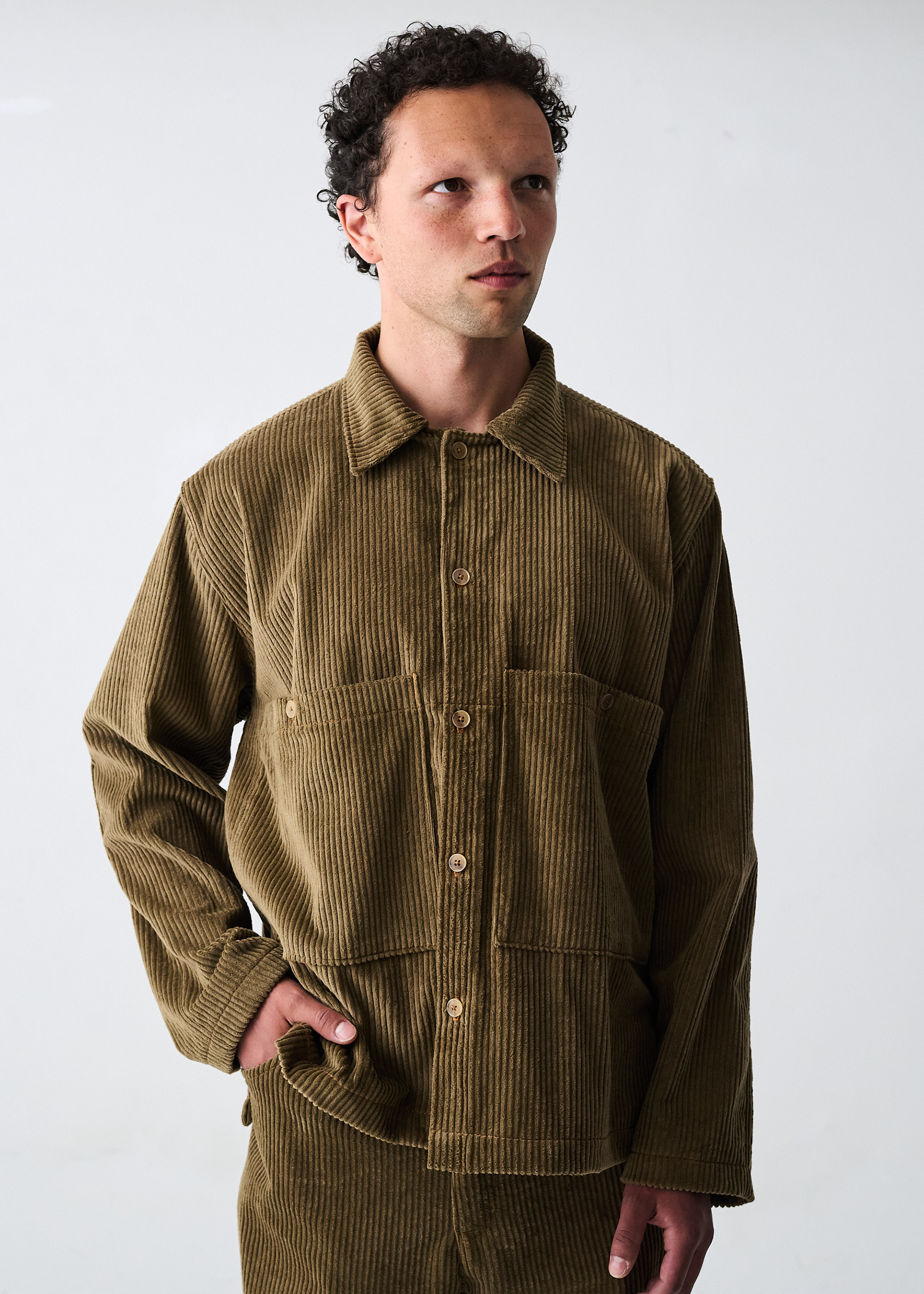 unisex relaxed fit with big pockets made from deadstock organic corduroy cotton 2000 DKK / 268 EUR