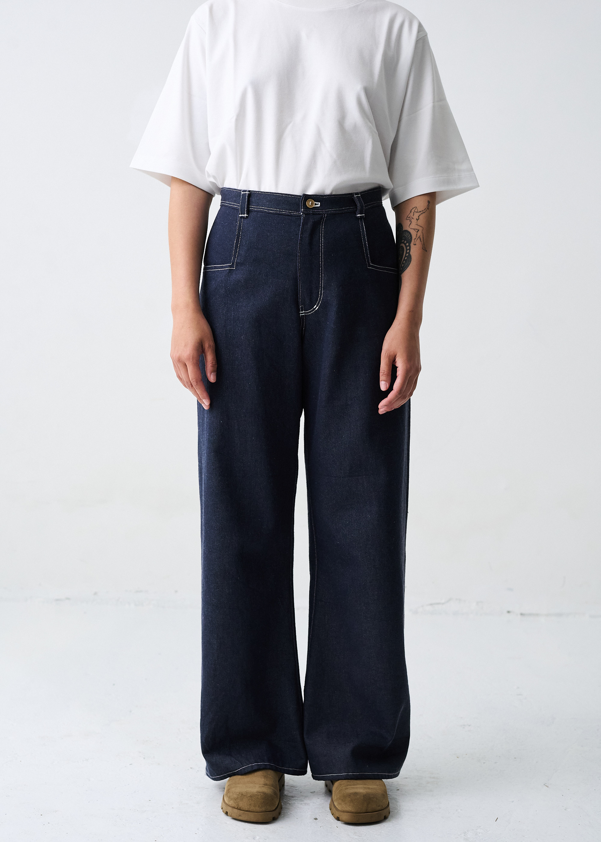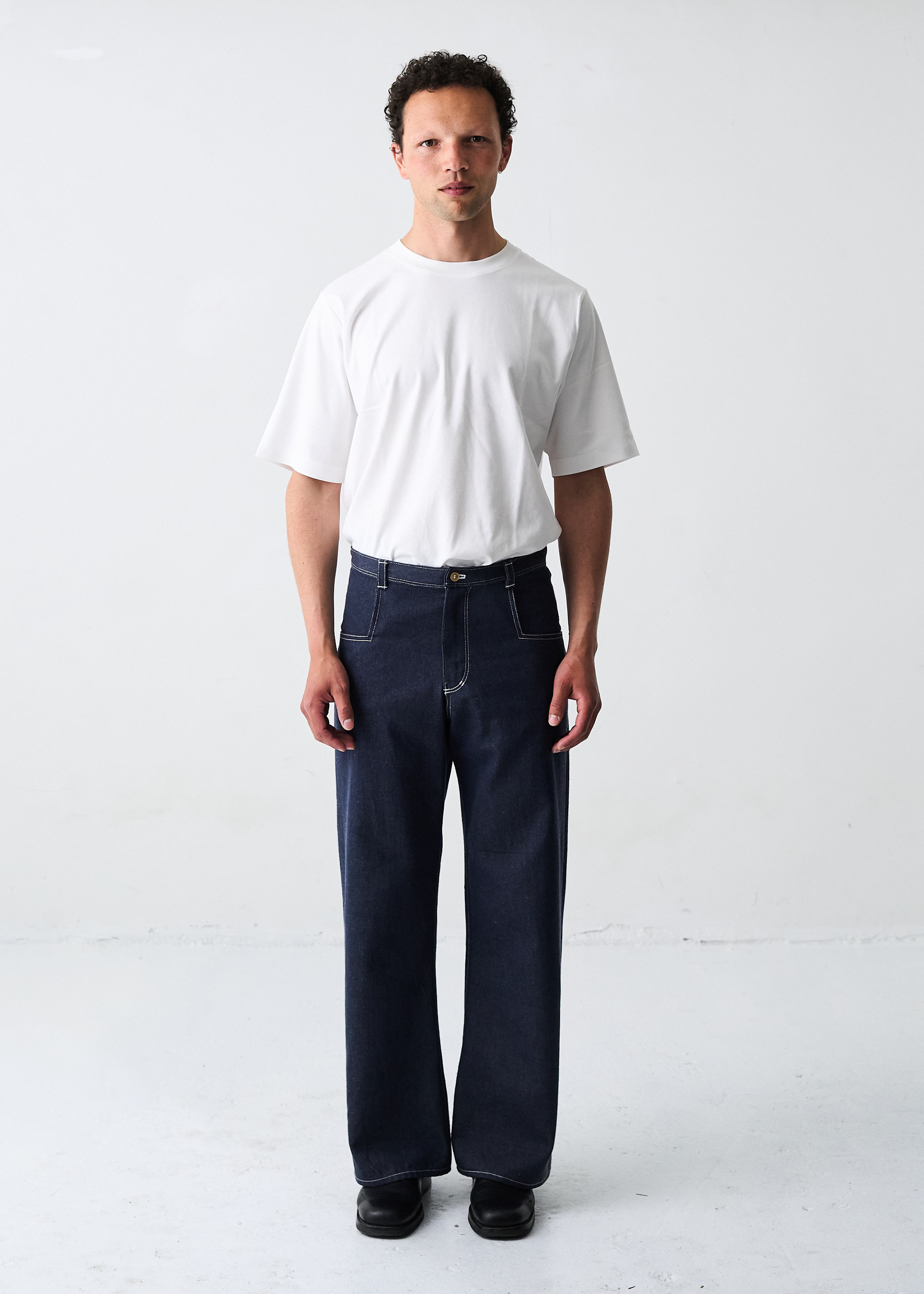 unisex relaxed wide leg fit made from deadstock organic denim cotton 2200 DKK / 295 EUR