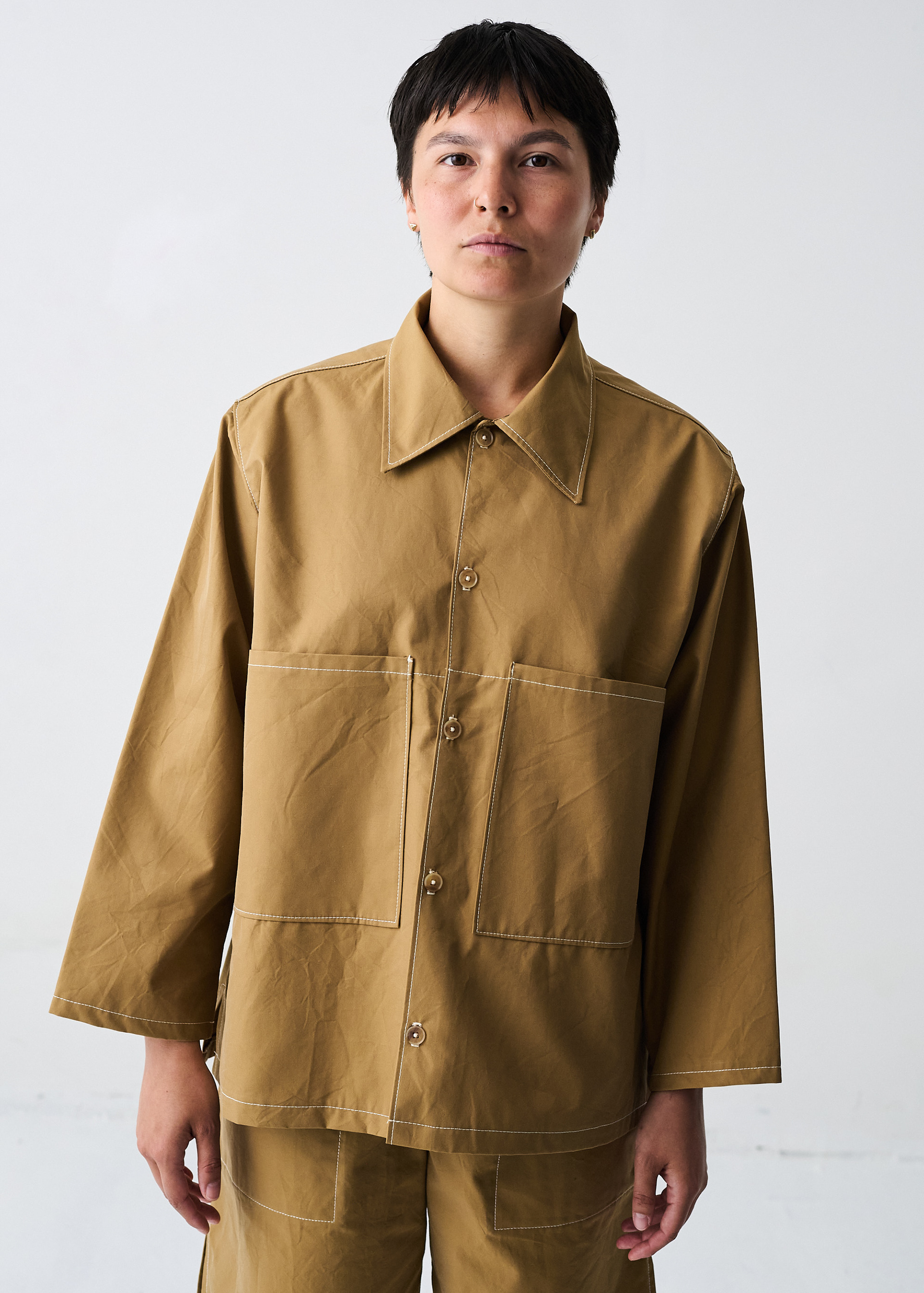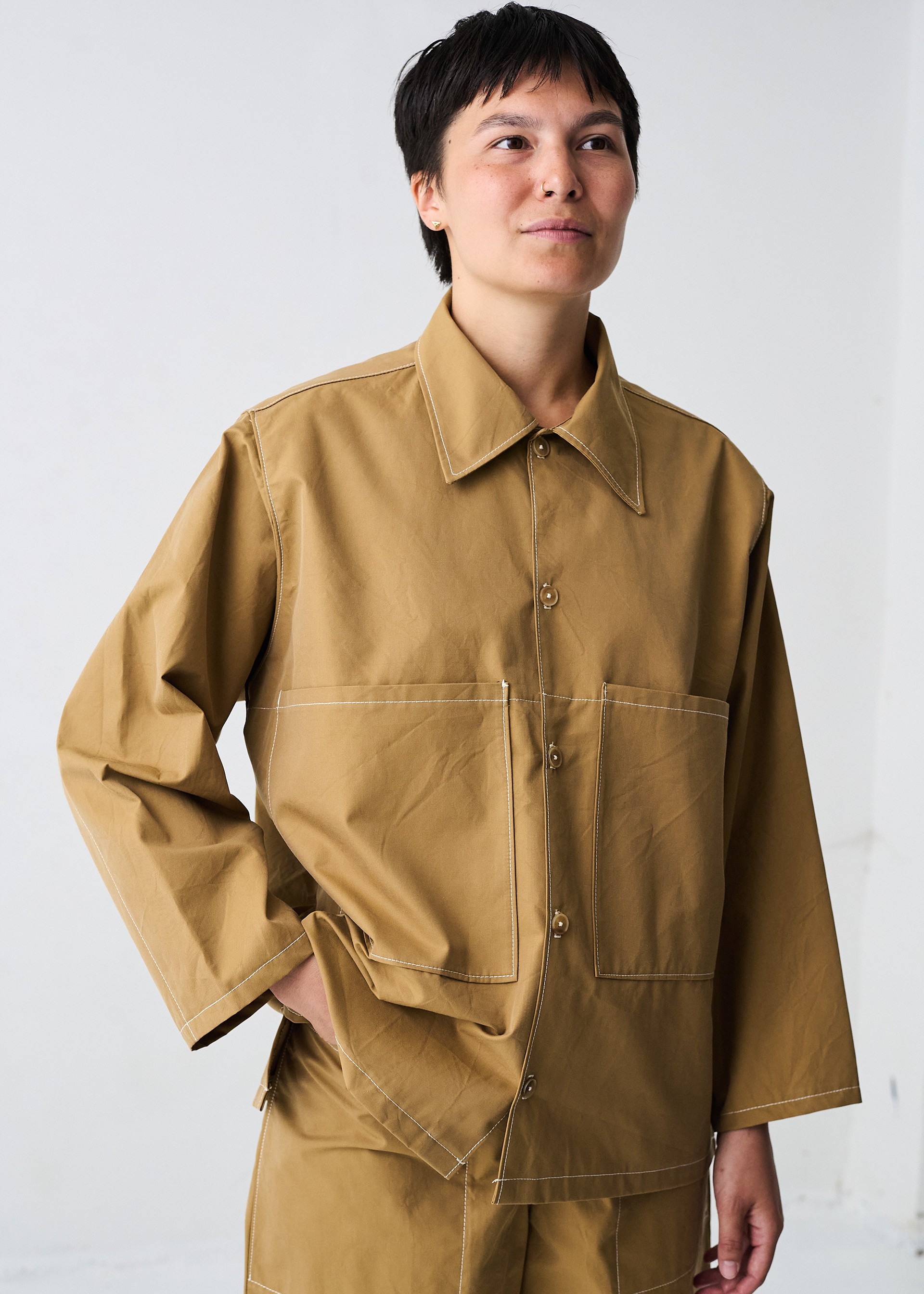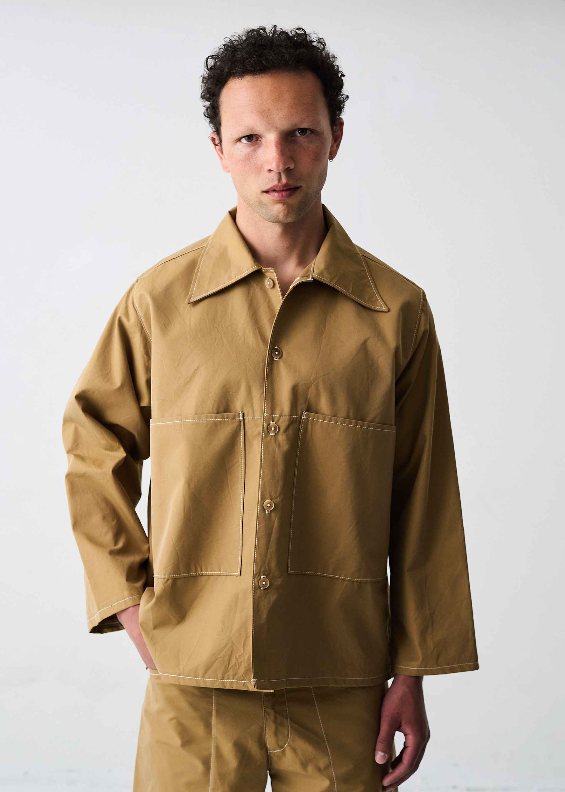 unisex relaxed boxy fit with big pockets made from deadstock organic cotton 1600 DKK / 214 EUR
