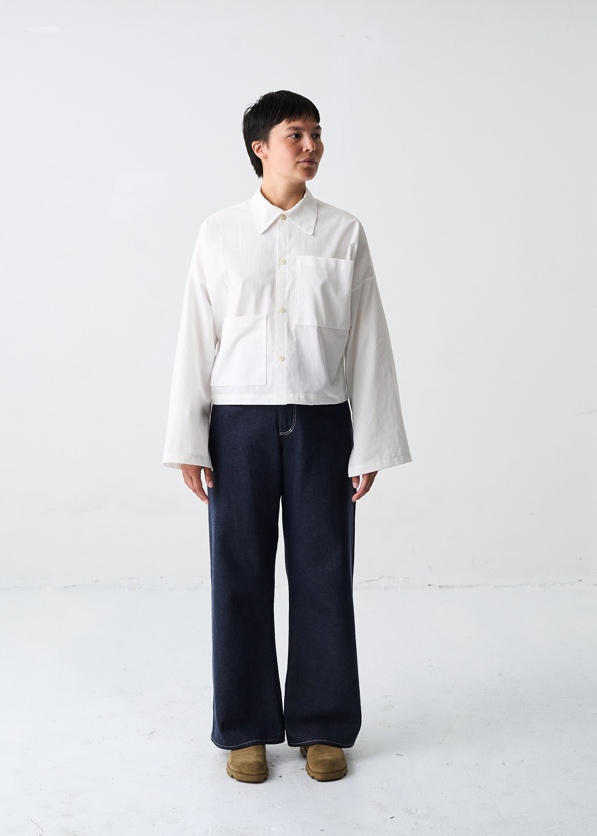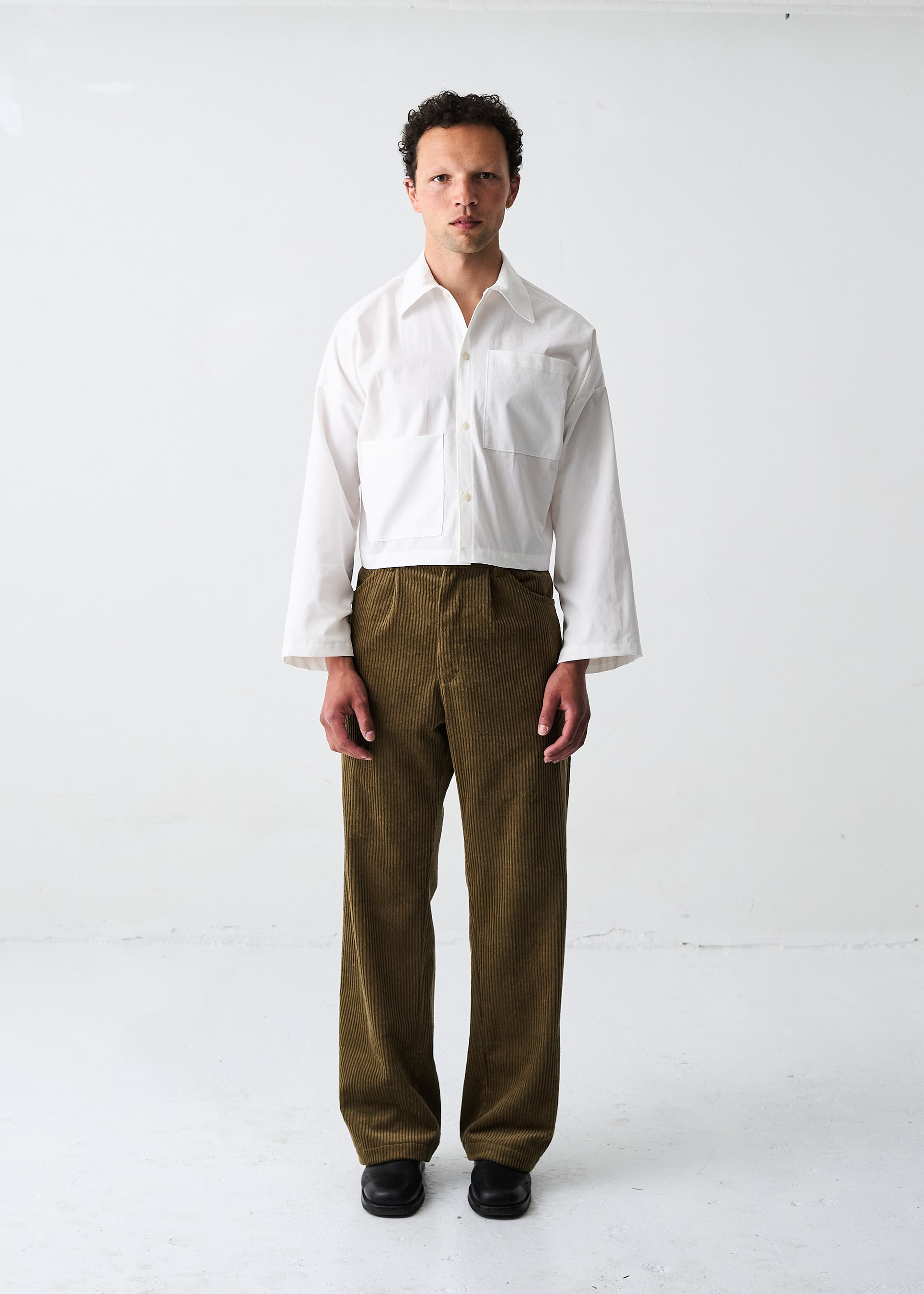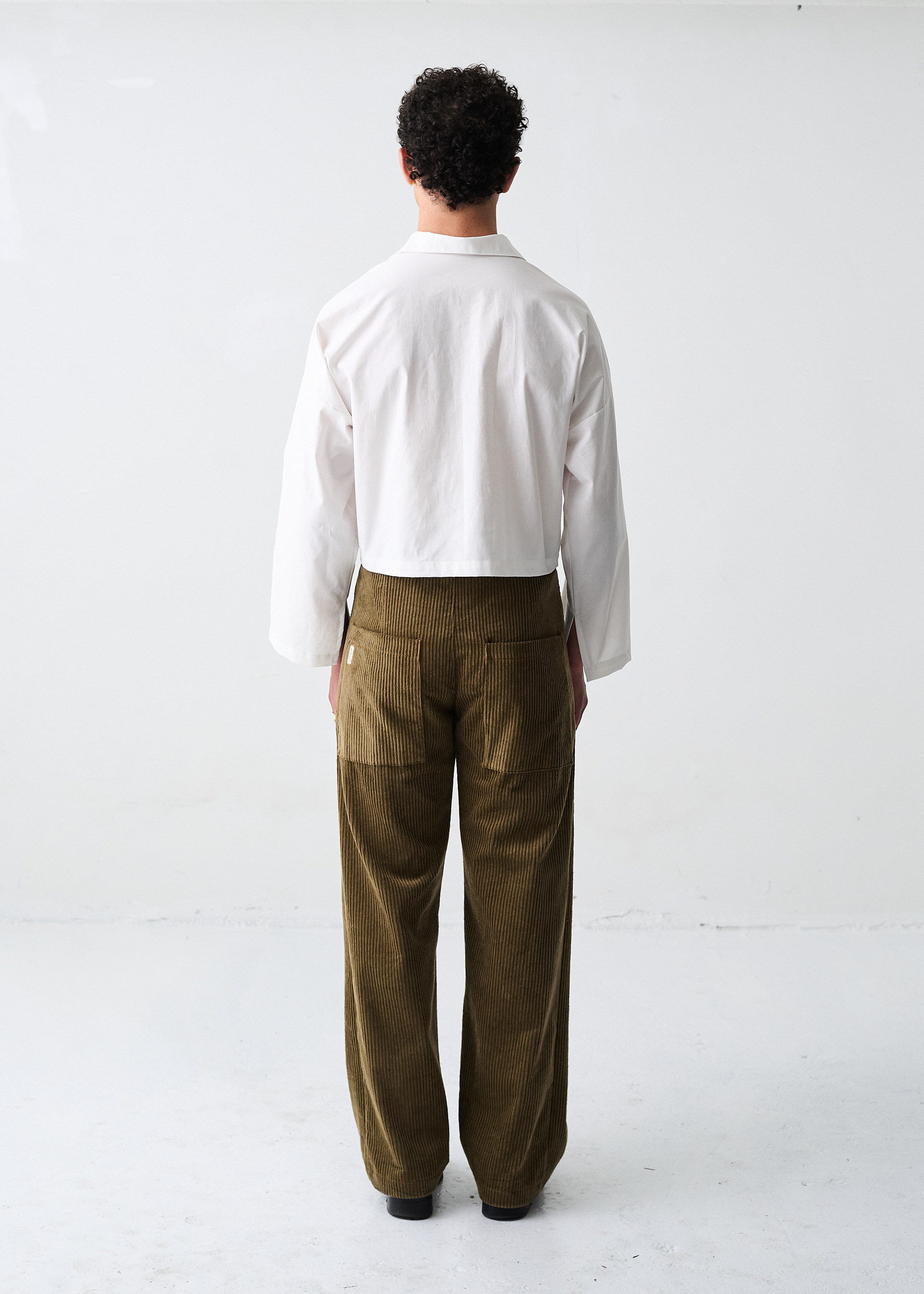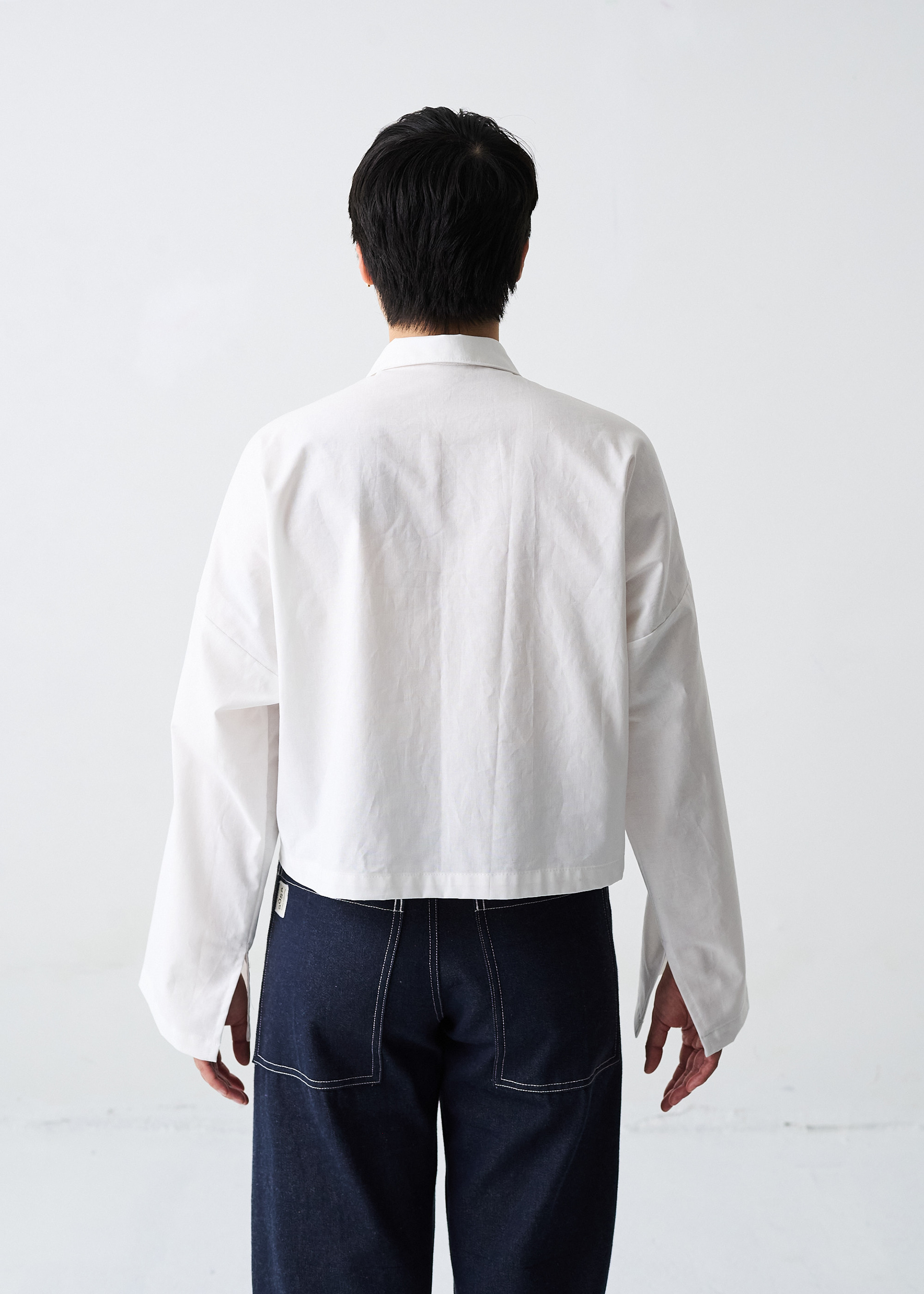 unisex relaxed boxy fit with zig zag pockets and slid sleeves made from deadstock organic cotton 1500 DKK / 200 EUR
